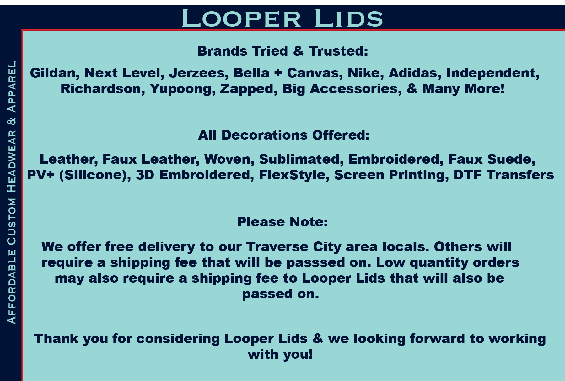 We do free, custom catalogs for those interested, just send your logo to looperlids@gmail.com to get the ball rolling!