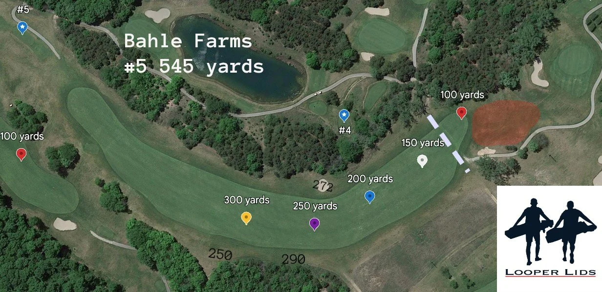 Fun fact: 11 out of the 13 par 4s and 5s at Bahle feature a downhill tee shot followed by an uphill approach. That means there's usually a flat zone somewhere in the fairway where the downhill ends and the uphill begins—and I'm here to argue that finding that flat spot is a key to scoring well at Bahle Farms.
