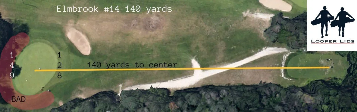 The 12th is the toughest of the challenging par 3s at Elmbrook. Playing around 170 yards, the green falls off sharply on the back left and the front right. A shot that lands behind the front bunker can “trampoline” another 20 yards into thick, long grass. Missing short right doesn’t result in as much roll, but it leaves a tough, uphill chip shot to a green that slopes away toward the left drop-off I mentioned earlier. I don’t want to point fingers at anyone in particular, but I play a lot with a guy named Greg who tends to bounce between those two trouble spots.
