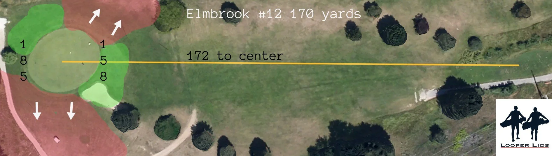 The shortest and arguably easiest par 3 at Elmbrook plays around 140 yards to a very steeply sloped green. This green is pitched from the back left corner to the front right corner and, surprisingly, is almost always into the wind.