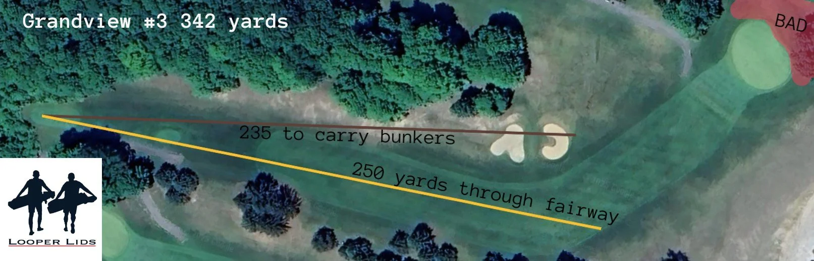Much like Elmbrook, hitting driver on every par 4 or 5 isn’t the best option for a large number of holes here. The breakdown will be from the blue tees, which are the furthest back tees at 6,600 yards. The main defenses at Grandview are the par 3s and par 5s, which isn’t usually the case for most courses. Follow along to get a professional golf caddie's perspective on the best practices for playing your best the next time you find yourself at Grandview.