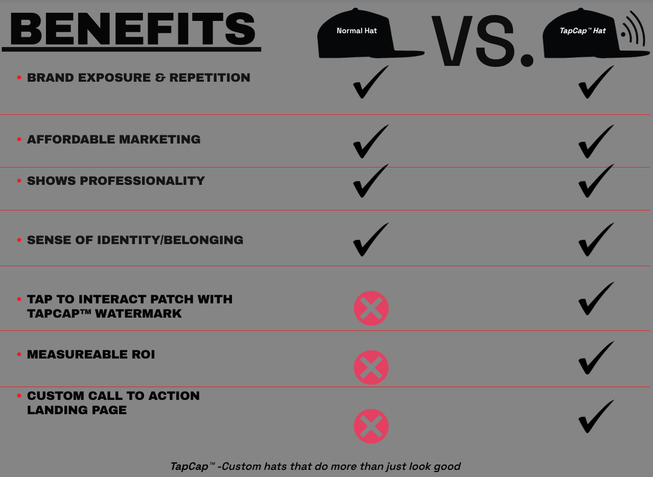 Every TapCap™ hat can link to a custom landing page designed for your business, team, or event. Send customers exactly where you want them to go with one tap.